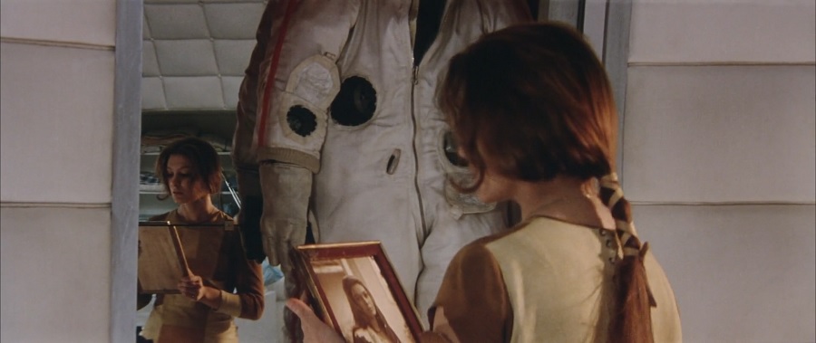 อย่างที่บอกไปว่า อดีต-ปัจจุบัน ความจริง-เพ้อฝัน กำลังซ้อนทับกันในมุมมองสายตาของ Kris ทำให้เขาพบเห็นแม่ ภรรยา สุนัข เดินขวักไขว่ในห้องบนสถานีอวกาศ