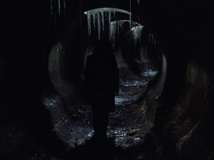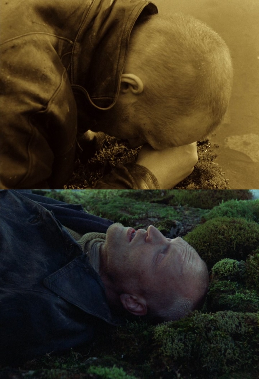ในห้วงความฝันของ Stalker ภาพจะค่อยๆเคลื่อนไล่ระดับ Tilt Up พบเห็นสิ่งของมากมาย หลอดฉีดยา ปืน เหรียญเงิน ปลาแหวกว่าย รวมถึงรูปพระเยซูคริสต์ที่จมอยู่ใต้น้ำ สะท้อนถึงทุกสิ่งอย่างหมดสิ้นสูญไร้ค่าในยุคสมัย Dystopian ซึ่งกล้องเคลื่อนมาสิ้นสุดที่มือของเขา (จุดจบสิ้นของโลก ล้วนเกิดจากเงื้อมมือของมนุษย์นี่แหละ)