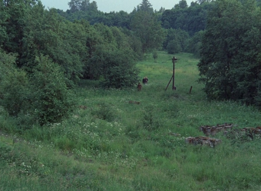 ทุกผลงานของ Tarkovsky ต้องมีสัตว์ตัวหนึ่งปรากฎอยู่เสมอ เรื่องนี้คือสุนัข ไม่เชิงว่าเป็นเพื่อนร่วมเดินทาง แต่มันติดตามมาด้วยตั้งแต่ที่สามเกลอนอนหลับพักผ่อน น่าจะเป็นสัญลักษณ์แห่ง ‘อิสรภาพ’ ที่ได้มาพบปะพวกเขา