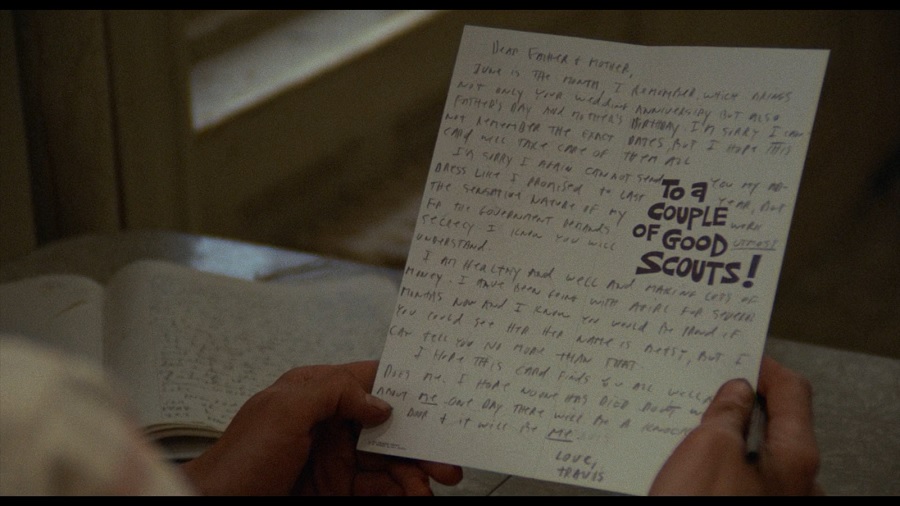 มีช็อตหนึ่ง ขณะที่ Travis พยายามคุยโทรศัพท์ ขอโทษ Betsy หลังพาเธอไปดูหนัง กล้องเคลื่อนจากตู้โทรศัพท์ ไปที่ทางเดินโถงยาว ไม่มีคน แสดงถึง การสนทนาที่ไร้ซึ่งคุณค่า ความสำคัญ ไม่มีประโยชน์อะไรที่จะพูดถึง