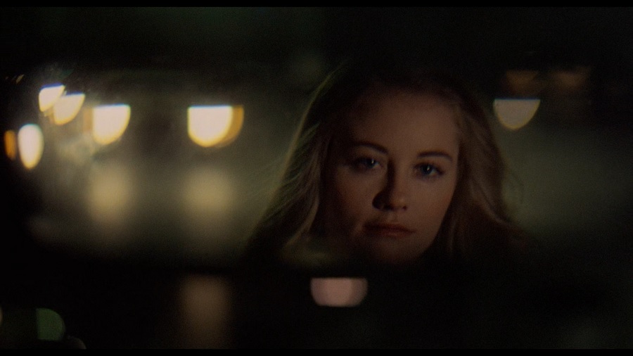 นี่ฉากช่วงท้าย มุมกล้องจากกระจกส่งหลัง (หญิงสาวนั่งอยู่เบาะหลัง)