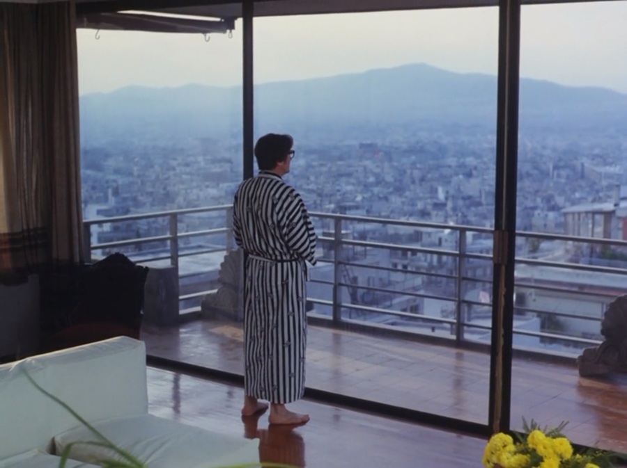 ทิวทัศน์ยามเช้าของกรุง Athens แสงสลัวๆ ดูขมุกขมัว ปกคลุมด้วยเมฆหมอก ราวกับดินแดนในความฝัน (Landscape in the Mist) แต่การเคลื่อนเลื่อนกล้องช้าๆ พร้อมบทเพลงบรรเลง Alexander’s Theme ในช่วงเปลี่ยนผ่านจากทำนองสนุกสนานสู่ Old Man Theme เศร้าๆ เหงาๆ เวิ้งว่างเปล่า … เดินสวนกับภรรยา แต่กลับให้แม่บ้านสอบถามว่าวันนี้ต้องการอะไรหรือเปล่า