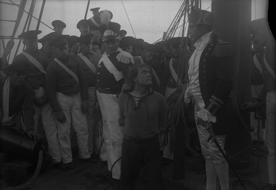 ไม่ต้องเสียเวลาคัดเลือกสรรนักแสดงคนใด Sjöström กำกับเอง เล่นเอง รับบท Terje Vigen ช่วงองก์แรกเอ่อล้นไปด้วยรอยยิ้มอิ่มอุ่ม โอบกอดพรอดรักภรรยาและบุตรสาว ไม่มีอะไรสุขใจไปมากกว่า กระทั่งการมาถีงของสงครามทำให้เริ่มหน้านิ่วคิ้วขมวด เหม่อมองดวงตะวันครุ่นคิดหาหนทางออกสู่แสงจันทร์ ตัดสินใจเสี่ยงโชคชะตาพายเรือออกไปหาเสบียงยังต่างแดน ดวงไม่ดีถูกทหารอังกฤษจับกุมตัว อ้อนวิงวอนร้องขอผู้บังคับบัญชาให้ปล่อยตัว แต่ไม่ได้รับความเห็นอกเห็นใจใดๆ