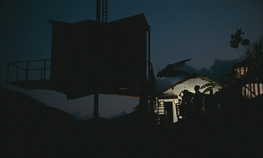 แต่ช็อตที่ผมชอบสุดคือ บ้านของ Sir Winston (เด็กชายขัดรองเท้า) เป็นการถ่ายย้อนแสงที่เห็นทุกอย่างมืดมิดสนิท แค่เงาลางๆของนักแสดงเดินผ่าน เคลื่อนไหวราวกับหุ่นเงา สร้างความฉงนสงสัยมากทีเดียว ว่าบ้านหลังนี้มีหน้าตาเป็นอย่างไร ตั้งอยู่บนเสาเหล็กเหรอ?? (แต่เดี๋ยวฉากถัดๆมาถึงตอนกลางวัน ก็จะเห็นเองว่าบ้านหลังนี้หน้าตาเป็นอย่างไร)