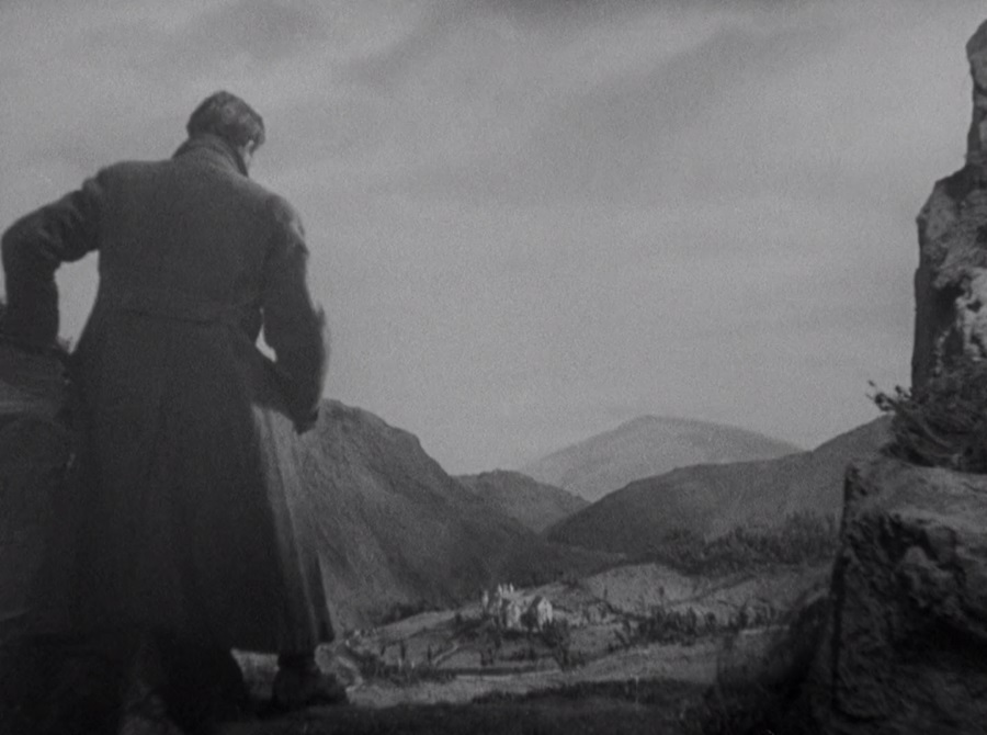 อย่างภาพช็อตนี้ระหว่างที่ Richard Hannay กำลังหลบหนีการไล่ล่าจับกุมของตำรวจ เนื่องจากมีพบเห็นใบหน้านักแสดง Robert Donat แน่นอนว่าต้องถ่ายทำในสตูดิโอ สร้างโขดหินให้ปีนป่าย ส่วนบ้านพัก/คฤหาสถ์ที่เห็นลิบๆ แท้จริงแล้วอาจเป็นโมเดลจำลองขนาดเล็กๆ และภาพวาดทิวเขา ท้องฟ้า … ทั้งหมดเป็นเพียงภาพลวงหลอกตาผู้ชมเท่านั้น!