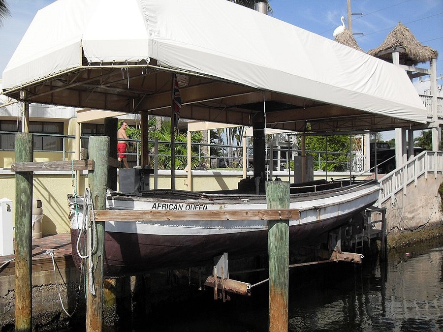 เรือ African Queen ชื่อเดิม S/L Livingstone สร้างขึ้นเมื่อปี 1912 โดย Lytham Shipbuilding & Engineering Co. เจ้าของคือ British East Africa Railway ถูกนำไปใช้ในการสำรวจแม่น้ำ White Nile (หรือ Victoria Nile) และ Lake Albert