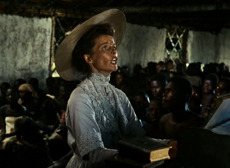บทเพลงมิสซา God of Grace and God of Glory แต่งคำร้องโดย Harry Fosdick ทำนองโดย John Ceiriog Hughes ในหนังขับร้องโดย Katharine Hepburn กับ Robert Morley แต่ถูกกลบโดยเสียงเซ็งแซ่ฟังไม่ได้สดับของชาวพื้นเมืองแอฟริกัน พวกเขาคงไม่เข้าใจภาษา เลยได้แต่ส่งเสียงอื้ออึงออกมา ชักชวนให้ผู้ชมตั้งคำถามเล็กๆ ‘พระเจ้าอยู่ในดินแดนนี้จริงๆนะหรือ?’