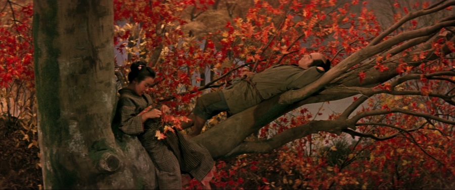 ในเรื่องการแสดง ลีลาเคลื่อนไหวของตัวละคร สังเกตว่าจะมีความเชื่องช้า เอื่อยเฉื่อย ราวกับภาพสโลโมชั่น กว่าจะขยับเดินกันได้แต่ละทีแทบต้องกลั้นลมหายใจกันเลยทีเดียว นี่ถือว่ารับอิทธิพลเต็มๆจาก Kabuki (ทุกคนต่างก็แต่งหน้าจัดด้วยนะ แค่ว่าจะไม่มีลวดลายมากเหมือนคาบูกิจริงๆ) ซึ่งจะมี ‘Expression’ ตรงไปตรงมา สามารถอ่านภาษากายออกได้ไม่ยากเท่าไหร่ และช่วงขณะของการกระทำ มักมีความรวดเร็วปุปัป แปปเดียวเท่านั้นฉากจบสิ้นลงทันที