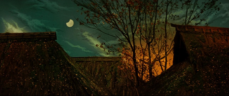 ลิบๆนั่นคือเทือกเขา Narayama วาดขึ้นด้วยบนกระจกด้วยเทคนิค Matte Painting ให้เกิดมิติความตื้นลึก (บางฉากมีการใช้ Miniature หลอกตาผู้ชมว่าคือบ้านขนาดเท่าของจริง) รู้สึกว่ามันอยู่ไกล แต่เดินไปไม่เท่าไหร่เดี๋ยวก็ถึงแค่เอื้อมมือ