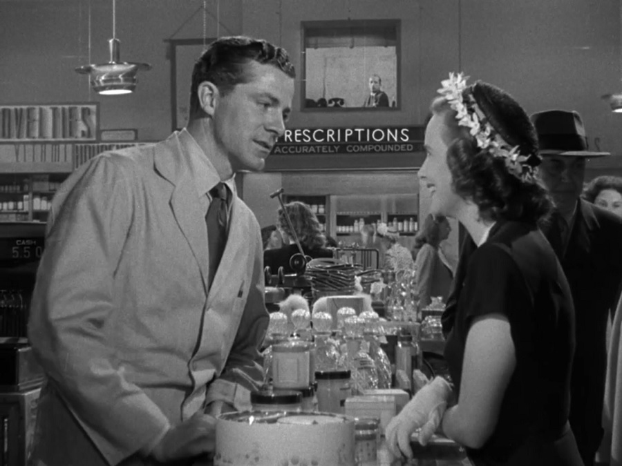 ตรงกันข้ามกับปาร์ตี้ไฮโซของ Al ฉากถัดมาคู่ขนานกันคือผับบาร์ เดทคู่ของ Fred กับ Peggy มนุษย์ชนชั้นกลาง(ค่อนไปล่าง) ต้องดิ้นรน แหวกว่าย เบียดเสียด เพื่อต่อสู้เอาตัวรอดในโลกสมัยใหม่ ถ่ายมุมก้มมองจากเบื้องบนลงมา รู้สึกน่าสมเพศเวทนาน่าเห็นใจคนเหล่านี้เสียเหลือเกิน
