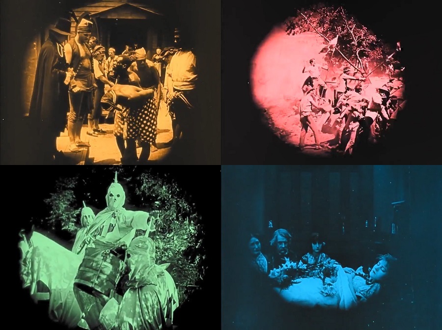 ถีงกระนั้น D. W. Griffith ก็ได้ครุ่นคิดกลวิธีอันแยบยลในการถ่ายทำฉากนี้ คือใช้แสงจากเปลวเพลิง ระเบิด ควันไฟ (ภาพสีแดงนี่ไปย้อมหลังการถ่ายทำนะครับ) แม้ผลลัพท์ยังออกมามืดๆมัวๆ สลัวๆ แต่ผู้ชมกลับได้อรรถรส บรรยากาศสงคราม สองฝ่ายสู้รบกันอย่างยิ่งใหญ่อลังการ