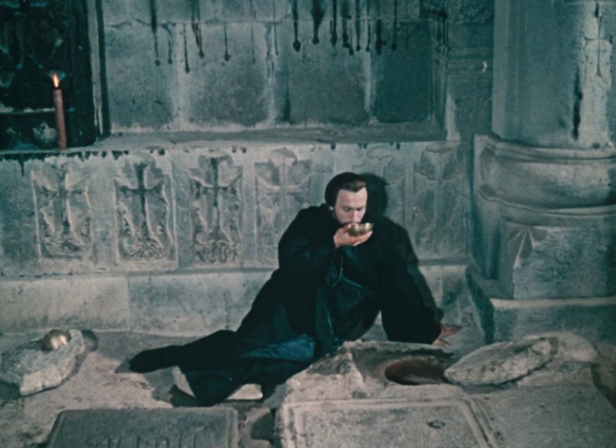 Sayat-Nova เดินทางมาถึง Haghpat Monastery พอตักไวน์ขึ้นดื่ม ปรากฎว่าถ้วยกลับว่างเปล่า เลยแหงนเงยหน้าขึ้นมอง(ภาพวาด)เทวทูต ดูราวกับเป็นลางสังหรณ์อะไรบางอย่าง … ผมมองถ้วยที่ว่างเปล่า คือการไม่หลงเหลืออะไรในชีวิตของ Sayat-Nova วิหารแห่งนี้คือเป้าหมายปลายทาง สถานที่สุดท้ายก่อนหมดสิ้นลมหายใจ