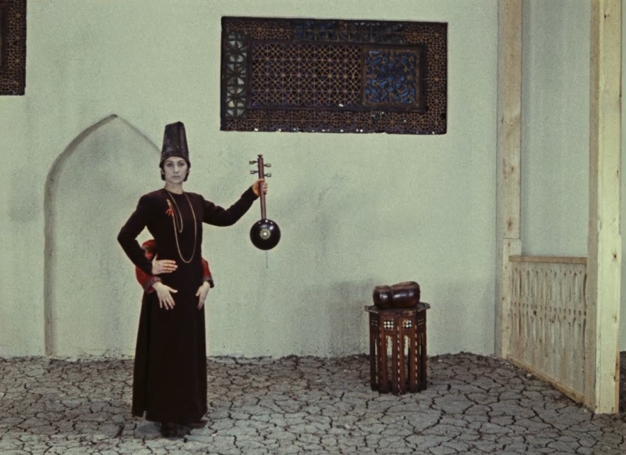 We want to show the world in which the ashugh [Sayat-Nova] lived, the sources that nourished his poetry, and for that reason national architecture, folk art, nature, daily life, and music will play a large role in the film’s pictorial decisions. We are recounting the epoch, the people, their passions and thoughts through the conventional, but unusually precise language of things. Handicrafts, clothing, rugs, ornaments, fabrics, the furniture in their living quarters – these are the elements. From these the material look of the epoch arises.