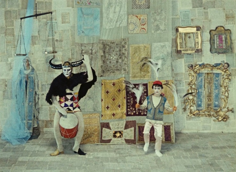 Watching Sergei Parajanov’s The Color of Pomegranates, or Sayat Nova, is like opening a door and walking into another dimension, where time has stopped and beauty has been unleashed. On a very basic level, it’s a biography of the Armenian poet Sayat-Nova, but before all else it’s a cinematic experience, and you come away remembering images, repeated expressive movements, costumes, objects, compositions, colors.