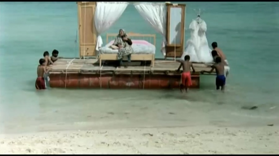 ผมว่าผู้ชมส่วนใหญ่น่าจะรับรู้สึกได้ว่าเรื่องราวตอนสาม มันช่างมีความ ‘เหนือจริง’ ราวกับเพ้อฝัน ดูไม่น่าเป็นไปได้เลยสักนิด! นั่นเพราะผกก. Meshkini ต้องการชักชวนให้ผู้ชมขบครุ่นคิด ตระหนักถึงเมื่อสตรีได้รับสิทธิเสรีภาพ ไม่หลงเหลือบุรุษที่คอยควบคุมครอบงำ แถมมีเงินทองจับจ่ายเหลือใช้ เลยสามารถกระทำสิ่งตอบสนองความพึงพอใจ วางเฟอร์นิเจอร์ข้าวของเครื่องใช้บนชายหาด ไม่มีผนังกำแพงสำหรับกีดกั้นขวางอีกต่อไป