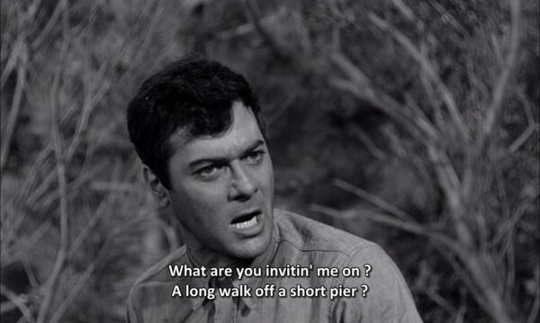 แต่เอาจริงๆผมรู้สึกว่า Poitier ดูมีพลังการแสดง Charisma บทบาทโดดเด่นกว่า Curtis พอสมควร (เห็นว่าผกก. Kramer ก็ให้ความสำคัญกับ Poitier มากกว่า Curtis) เพราะสามารถอดกลั้นต่อพฤติกรรม ‘stereotypes’ ของคนขาวทั่วๆไป ยินยอมให้ความช่วยเหลือ ร่วมหัวจมท้าย คลายความโกรธเคือง และท้ายที่สุดบังเกิดมิตรภาพ ให้การยินยอมรับกันและกัน