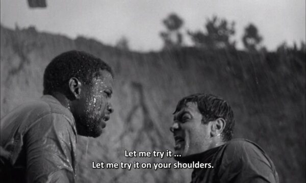 ระหว่างพักเหนื่อยจากการวิ่งหนี Noah หยิบบุหรี่ขึ้นมาสูบ ส่งมอบให้ Joker เช็ดก้นกรองก่อนนำเข้าปาก นั่นคือชนวนเหตุความไม่พึงพอใจ “You afraid of catchin’ my colour?” นำไปสู่การต่อสู้ ปลุกปล้ำ ชกต่อยตี นี่ถือเป็นขีดสุด จุดแตกหัก ตามประสามนุษย์ คุยกันไม่รู้เรื่องก็ใช้ความรุนแรง จนกว่าใครสักคนจะยินยอมแพ้ หรือ…