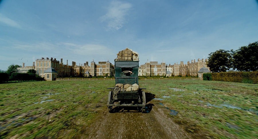 เช่นเดียวกันกับการถ่ายด้านข้าง มุมก้ม-เงย กล้องค่อยๆเคลื่อนไหล (ใช้ลางเลื่อนและเครน ไม่ใช่กล้อง Hand-Held) มีความผิดแผกแปลกตา แรกๆอาจไม่คุ้นเคยแต่สักพักจักเริ่มชินชา และการจัดแสงพยายามใช้จากธรรมชาติ กลางคืนเพียงเทียนไขส่องสว่าง ยุคสมัยนั้นยังไม่มีไฟฟ้าใช้กันนะครับ