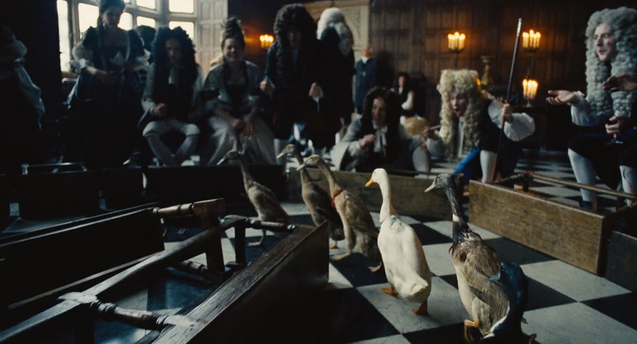 หนังนำเสนอฉากการแข่งขันวิ่งเป็ดด้วยภาพสโลโมชั่น ต่อเนื่องจาก Sarah Churchill ยินยอมรับ Abigail Masham เข้าทำงานเป็นคนรับใช้ ตีความได้คือวังวนแห่งการต่อสู้ที่หญิงสาวต้องแข่งขันไต่เต้า ต้องการความสุขสบายต้องได้รับชัยชนะอันดับหนึ่งเท่านั้น