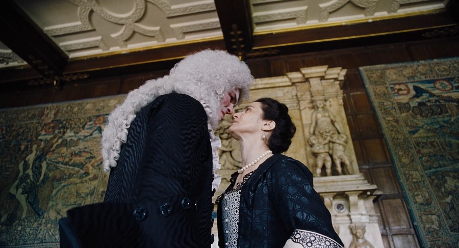 หนังเรื่องนี้อิสตรีคือผู้มีอำนาจ ขณะที่บุรุษสวมวิกแต่งหน้า(เหมือนผู้หญิง)คือขี้ข้ารับใช้ แม้หลายๆอย่างดูกลับตารปัตรแต่ค่านิยมทางสังคมผู้ชายยังคงเป็นใหญ่, ช็อตนี้ที่ Robert Harley (รับบทโดย Nicholas Hoult) พยายามวางท่าข่มขู่ Sarah มุมกล้องเงยสูงเห็นเพดาน แต่สุดท้ายเมื่อเธอไม่ยินยอมเขาก็ไม่สามารถทำอะไรได้