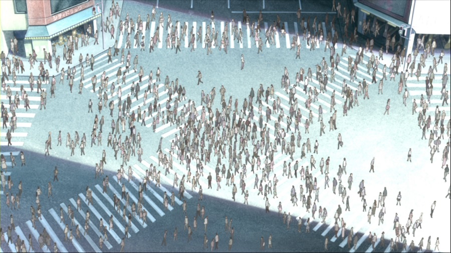 นี่น่าจะคือสี่แยก Shibuya ที่ถือว่าคือ ‘ใจกลาง’ ของกรุง Tokyo (คล้ายๆ Time Square ของ New York) เป็นบริเวณคาคั่งไปด้วยผู้คนสัญจรไปมา ซึ่งการที่ทุกสิ่งอย่างหยุดนิ่งในช็อตนี้ สามารถเทียบแทนสภาวะทางจิตใจของทั้ง Makoto และ Chiaki และยังเป็นสถานที่ร่ำจากลาชั่วนิรันดร์ในไทม์ไลน์/โลกคู่ขนานนี้