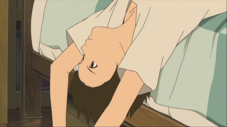 การเลือกใช้ท่านอนห้อยหัวขณะค้นพบโอกาสแก้ตัว แฝงนัยยะถีงพฤติกรรมแสดงออกตรงกันข้ามกับสิ่งที่ Makoto เคยทำมา ก่อนหน้านี้เธอมีนิสัยความเห็นแก่ตัว เอาแต่ใจ ไม่สนใครอื่น แต่นี่คือครั้งแรกที่กลับตารปัตร ครุ่นคิดถีง Chiaki ต้องการให้เขากลับมามีชีวิตอีกครั้ง