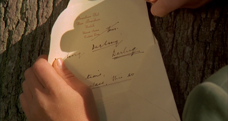สถานที่ที่พวกเขาพูดคุยสนทนา ยังบริเวณริมหน้าต่าง (น่าจะตำแหน่งเดียวกับตอนที่ Lady Marian เคยพูดบอกกับ Leo ว่าไม่สามารถแต่งงานกับ Ted Burgess) แต่คราวนี้ถูกปิดอยู่ (สื่อถึงการหมดสูญสิ้นโอกาสที่จะครองรักกับ Ted Burgess) และปกคลุมด้วยความมืดมิด (สะท้อนสภาพจิตใจทั้งสองที่ยังคงได้รับอิทธิพลจากช่วงวันหยุดฤดูร้อน ค.ศ. 1900)