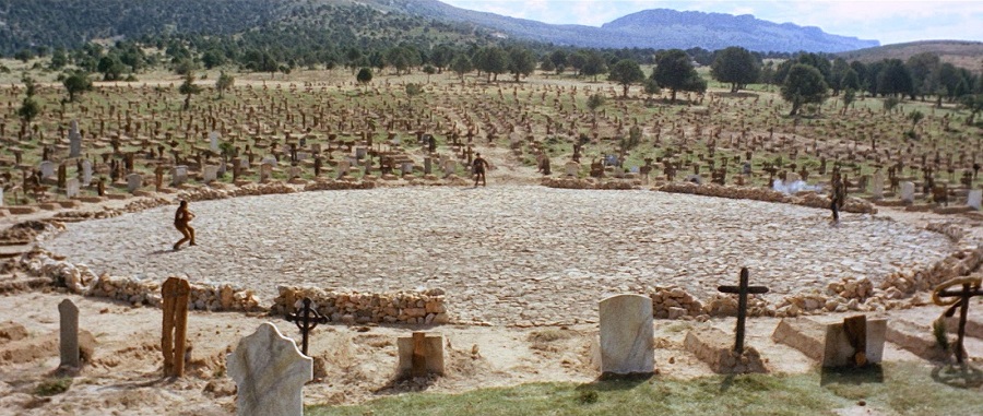 Sad Hill Cemetery มันไม่ใช่แค่สุสาน ความตั้งใจของผู้กำกับสร้างฉากนี้ให้เหมือนกับ Roman Circus คณะละครสัตว์ มีวงกลมตรงกลางเสมือนเวทีการแสดง ขณะที่ไม้กางเขนสุสานทั้งหลายก็ราวกับผู้ชมทั้งหลาย