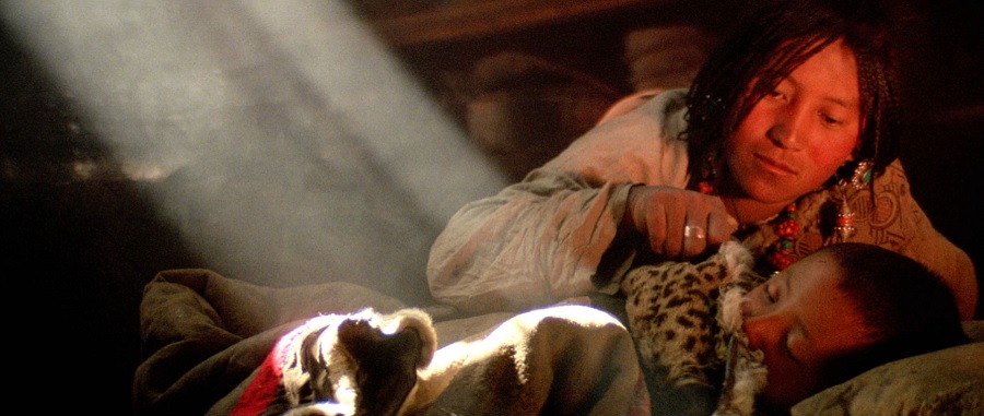 ผมไม่ค่อยแน่ใจว่าชาวทิเบตมีประเพณีเกี่ยวกับการชะล้างร่างกายอะไรรึเปล่า (นึกถึงชาวฮินดูในอินเดียที่เชื่อว่าการอาบน้ำในแม่น้ำคงคา จะช่วยชำระล้างบาป หลุดพ้นจากวงจรชีวิตและความตาย) แต่ฉากนี้ให้ความรู้สึกเหมือนมีมากกว่าแค่การทำความสะอาด โดยเฉพาะช็อตของตาราแลดูเหมือน ‘พระแม่ธรณีบีบมวยผม’ สัญลักษณ์ของความมั่นคงและป้องกันสิ่งเลวร้าย