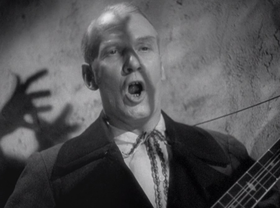 คนที่รับชมหนังจนจบแล้วคงคาดเดาไม่ยากว่า นักกีตาร์+ขับร้องเสียง Baritone คือผู้ส่งมอบรหัสลับ(ผ่านเสียงเพลง)ให้กับ Mrs. Froy ตั้งใจรับฟัง ฮัมตามอยู่บนโรงแรม ซึ่งความตายของตัวละครถือว่าตามสไตล์ Hitchcockian เริ่มจากเงามืดค่อยๆคืบคลานเข้ามา พบเห็นเพียงมือบีบคอ แต่ไม่รับรู้หน้าตา … หลายคนอาจมองว่าฆาตกรคือ McGuffin แต่มันครุ่นคิดไม่ยากว่าต้องเป็นฝีมือของ Dr. Hartz