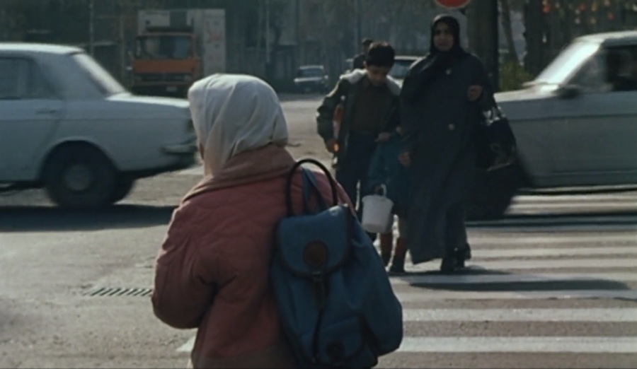 ภาพแรกของหนังเริ่มต้นคล้ายๆ The White Balloon (1995) คือถ่ายทำแบบ Long Take ด้วยการแพนนิ่งจากคน-สัตว์-สิ่งของหนึ่งสู่อีกคน-สัตว์-สิ่งของหนึ่ง ฟากฝั่ง(ถนน)หนึ่งสู่อีกฟากฝั่งหนึ่ง เด็กๆเดินข้ามถนน → คนขายพรม → มารดาเข็นรถเข็น ฯ นี่คือลักษณะของ ‘Narrative Shift’ คล้ายๆการส่งไม้ผลัด ชักชวนให้ผู้ชมค้นหาตัวละครหลักอยู่ไหน? หรือจะมีใครโผล่มาอีกในอนาคต?
