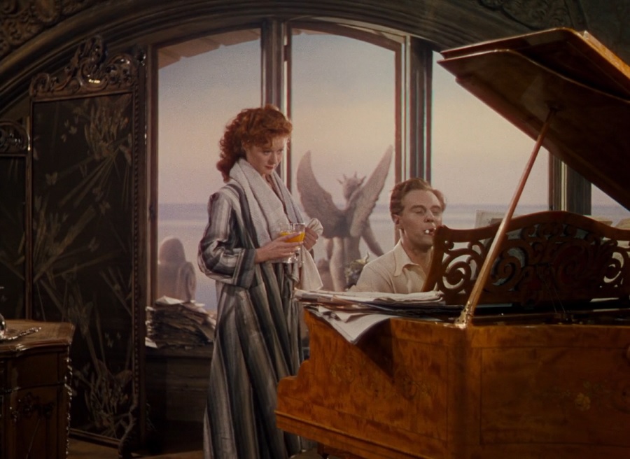 ผมครุ่นคิดว่าผู้กำกับ Powell ไม่ได้อยากถ่ายทำในสตูดิโอสักเท่าไหร่ แต่เหมือนว่า Moira Shearer จะติดปัญหาบางอย่างจึงไม่ได้เดินทางไป Monaco (อันนี้เกิดจากการสังเกตของผมเองนะครับ) ด้วยเหตุนี้เลยจำต้องใช้วิธีการเดียวกับ I Know Where I’m Going! (1945) คือใช้นักแสดงแทนสำหรับช็อตระยะไกล(ไม่เห็นใบหน้า) ส่วนการโคลสอัพก็ถ่ายทำในสตูดิโอ ประกอบด้วยฉากสนทนายามค่ำคืนตรงระเบียง (สถานที่เดียวกับที่ตัวละครกระโดดจะฆ่าตัวตาย) และผู้คนเข้าห้อมล้อมตรงรางรถไฟ