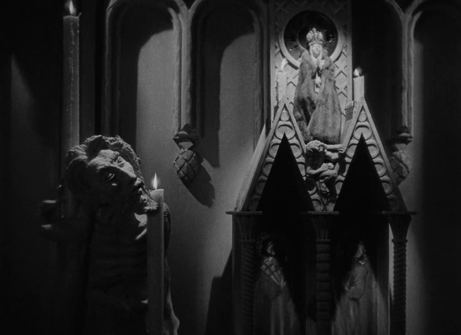 ความสุดประหลาดของหนังเรื่องนี้ จะมีพระราชวังแห่งไหนบนโลก ประดับตกแต่ง เต็มไปด้วยรูปปั้น Gargoyles, ประตูบานใหญ่ต้องใช้หลายคนผลักถึงจะเปิดออก, หัวกระโหลก โครงกระดูกวางบนโต๊ะอาหาร ฯ นี่มันไม่ใช่พระราชวังแล้ว นรกชัดๆ
