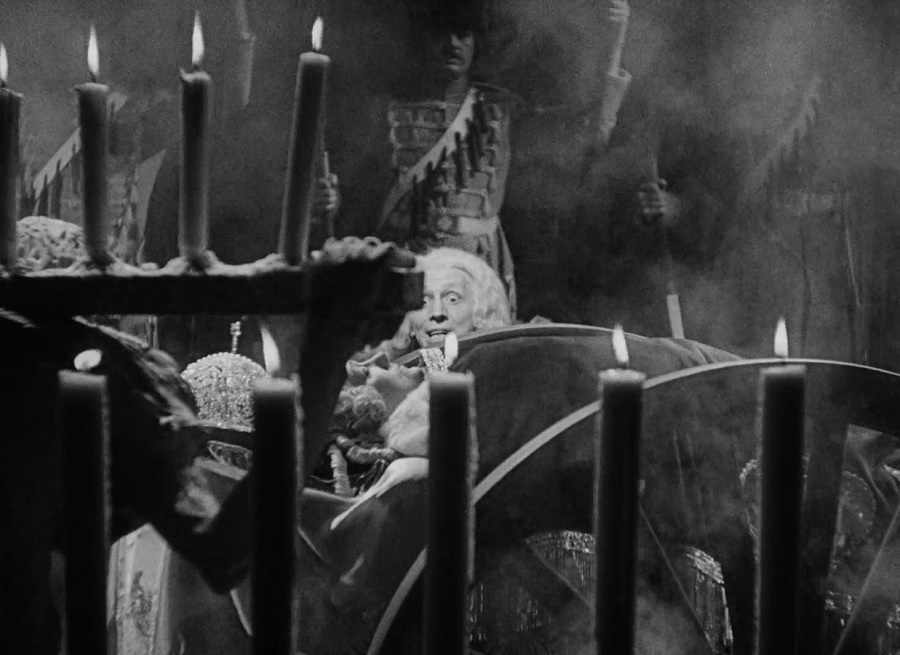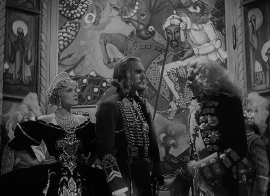 การปรากฎตัวของ Grand Duke Peter เริ่มต้นจากสุนัขนำทาง คนรับใช้ผิวสี ชู้รัก (นั่งลงข้างๆ) และเจ้าชายก้าวเดินออกมา สวมชุดคุลมขนสัตว์ ทำตาพองโต แสยะยิ้มกว้าง หาได้มีรูปหล่อเหลา ดูยังไงก็ไม่สมประกอบเลยสักนิด!