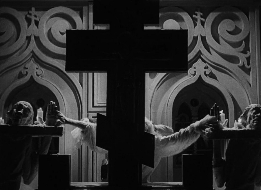 ผมโคตรไม่เข้าใจว่าทำไม่ใช้รูที่ Grand Duke Peter อุตส่าห์เจาะไว้สำหรับถ้ำมองชายคนนั้น! กลับเป็นการซ้อนภาพเจ้าหญิง Catherine ยืนอยู่ด้านหลังประตูลับ แสดงปฏิกิริยาสีหน้าตื่นตกใจ หวาดสะพรึงกลัว รู้สึกเหมือนถูกทรยศหักหลัง ค่อยๆก้าวลงบันไดทีละขั้น สภาพจิตใจกำลังตกต่ำ ความมืดปกคลุมครอบงำใบหน้า แสงสลัวๆส่องผ่านบางครั้งให้เห็นถึงความหมดสิ้นหวัง