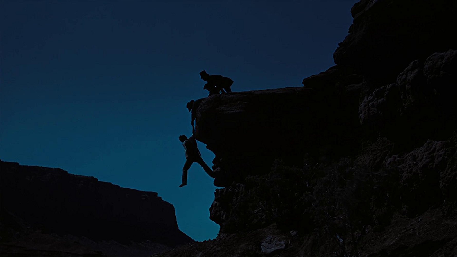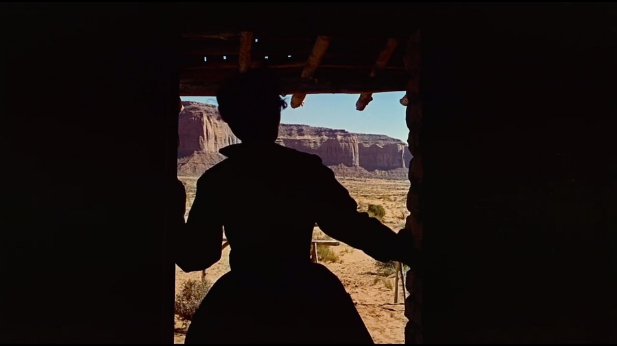 นี่เป็นวินาทีแห่งการตัดสินใจของ Ethan จะเลือกที่จะเป็นคนบ้านป่าเมืองเถื่อนฆ่าหลานสาวของตนเอง หรือปลดปล่อยเธอไป, ช็อตนี้ถ่ายออกมาจากในถ้ำธรรมชาติ ตรงกันข้ามกับประตูบ้านที่มนุษย์สร้าง สะท้อนถึงสันดานความป่าเถื่อนของจิตใจมนุษย์ แต่นี่จะเป็นสิ่งที่ตัวละครเลือกหรือเปล่า?