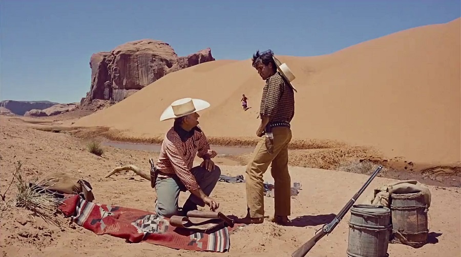 นี่ต้องเป็นช็อตที่สร้างแรงบันดาลใจให้ผู้กำกับ David Lean ในการถ่ายทำ Lawrence of Arabia (1962) อย่างแน่ๆ เป็นการคำนวณจังหวะได้พอดีเปะมากๆ เมื่อพระอาทิตย์ลอยอยู่ตำแหน่งระดับเดียวกับตัวละครที่เดินผ่านหน้าไป