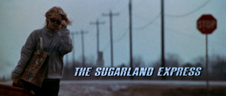 ช็อตที่ชื่อหนังปรากฎขึ้น THE SUGARLAND EXPRESS จะพบเห็นป้ายสีแดง STOP เหมือนต้องการบอกใบ้ให้หยุดการเดินทาง หรือสิ่งที่ Lou Jean Poplin กำลังจะกระทำ (ซึ่งก็คือการบังคับให้สามีแหกคุกหลบหนี) และสังเกตว่าตัวละครสวมใส่เสื้อผ้าหลายชั้น ปกปิดบังความต้องการ/ตัวตนแท้จริงไว้ภายใน (จุดประสงค์แท้จริงคือนำไปให้สามีสวมใส่ระหว่างหลบหนีออกจากเรือนจำ)