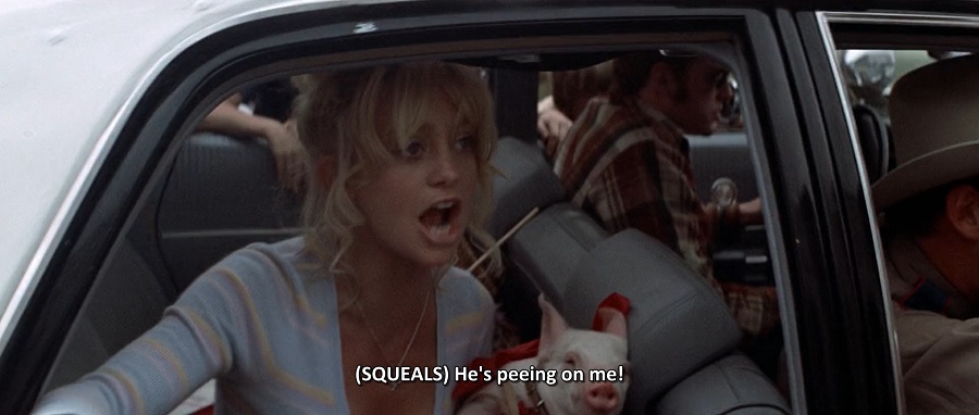 การที่ Goldie Hawn พูดย้ำๆซ้ำๆจนรู้สึกผิดสังเกต “He’s peeing on me!” นั่นเพราะเจ้าหมูมันฉี่ใส่เธอจริงๆ แต่เอาจริงๆผมไม่รู้สึกว่าน่าขบขันเลยนะ เพราะผู้คนในเมืองแห่งนี้มีแต่พวกหลอกตนเอง เกาะกระแสสังคม ใช้เพียงอารมณ์/ความรู้สึกตนเองเป็นที่ตั้ง … ก็เหมือนเจ้าหมูตัวนี้นี่แหละ ปัสสาวะออกมาโดยสันชาติญาณ!