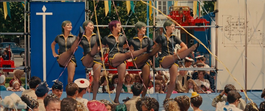 สำหรับผู้ชาย การได้เห็นสาวๆสวมกระโปรงสั้นๆ กระโดดโลดเต้น เริงระบำ แหกแข้งแหกขา มันช่างสร้างความคึกครื้น คึกคัก ไม่ได้สนใจรายละเอียดอื่นหรอกนอกจากจับจ้องมองหา … ผมรู้สึกว่านี่เทคนิคลีลา ลูกล่อลูกชนของผู้กำกับ Demy ให้ผู้ชมรู้สึกเพลิดเพลินกับความวับๆแวมๆ ล่อตาล่อใจ เป็นอีกสีสันที่ทำให้หนุ่มๆรู้สึกกระชุ่มกระชวย สดชื่น กระสันซ่าน