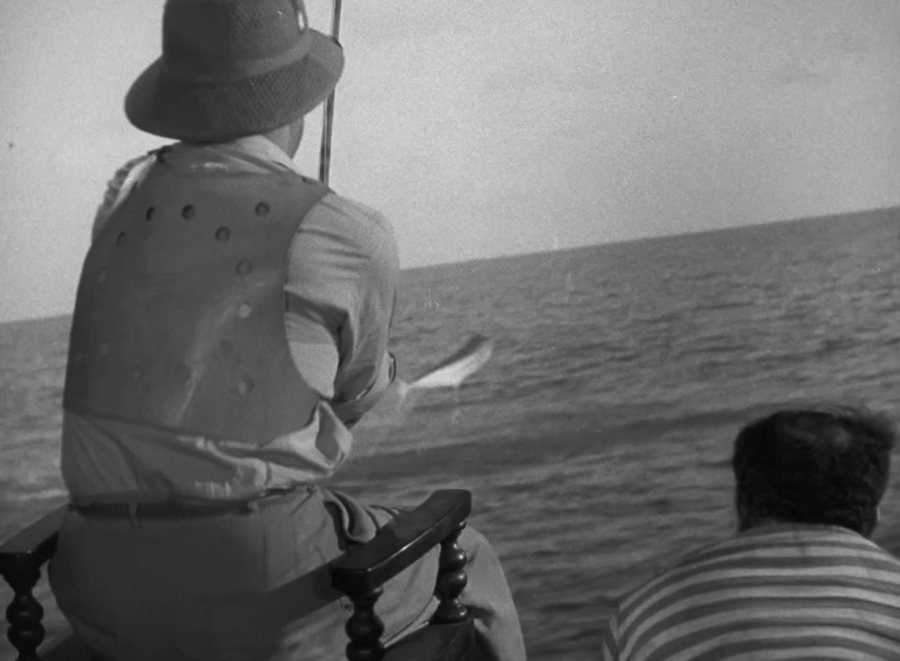 หนังทั้งเรื่องสร้างฉากถ่ายทำขึ้นในสตูดิโอ Warner Bros. ซึ่งก็รวมถึงฉากล่องเรือตกปลา มีทั้งภาพวาดท้องฟ้าบนกระจก Matte Painting และใช้ Rear Projection ฉากภาพขึ้นฉากช็อตนี้ สร้างความตกตะลึงงันให้ผมไม่น้อย เพราะเจ้าปลากระโดดมันช่างได้จังหวะพอดิบพอดีเสียจริง