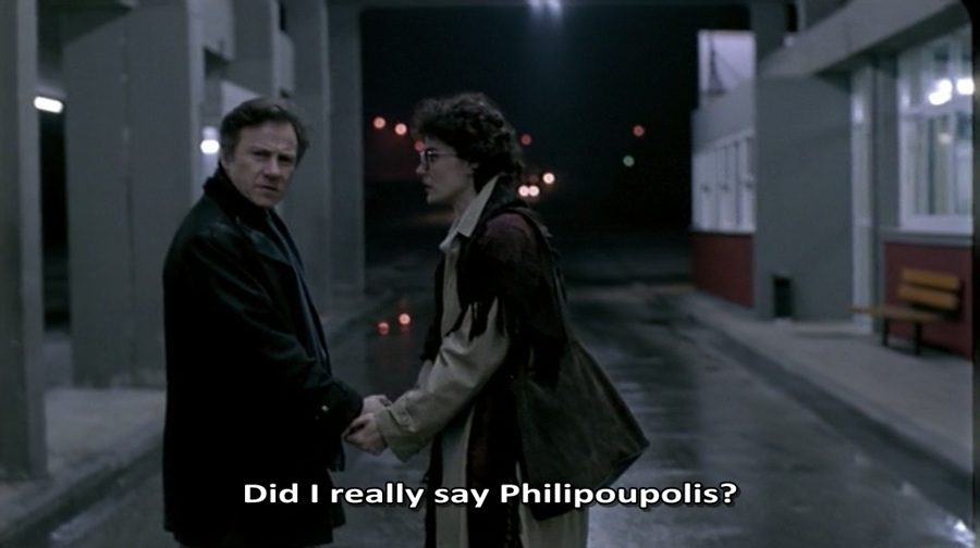 Philipoupolis คือชื่อเมืองเก่าที่ชาวกรีกนิยมเรียกถึง แต่ปัจจุบันเปลี่ยนมาเป็น Plovdiv, Bulgaria … มันมีหลายครั้งในหนังที่ชื่อเมืองกล่าวถึง ไม่ตรงกับชื่อทางการในปัจจุบัน นี่ถือเป็นอีกหนึ่งวิธีการเลือนลางอดีต-ปัจจุบัน ฟังดูอาจสับสน แต่หนังเรื่องนี้สร้างโดยผู้กำกับชาวกรีก จึงมักเรื่องชื่อเมืองในมุมมองของชาว Greece