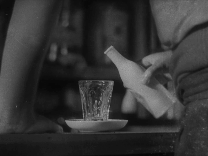 การสูญหายตัวไปของ Otaka (และบุตรสาว) สร้างความผิดหวังให้กับ Kihachi ค่ำคืนนี้เลยมาดื่มด่ำ กำลังมึนเมามาย นึกว่าหน้ามืดตาลาย พบเห็นเธอทำงานสาวเสิร์ฟ เลยกล่าวคำตำหนิต่อว่า (ชาวญี่ปุ่นสมัยนั้นยังมองว่างานบริการเป็นอาชีพชั้นต่ำ) เนื่องด้วยคุณภาพฟีล์มเต็มไปด้วยริ้วรอยขีดข่วน ผมจึงมองไม่ออกว่าด้านหลังของหญิงสาวคือแสงไฟกระพริบหรืออะไร? แต่มันสามารถสะท้อนความรู้สึกภายใน อีกไม่นานจะร้องห่มร้องไห้ ระบายความอัดอั้นตันใจ พูดอธิบายเบื้องหลังความจริงทั้งหมดออกมา
