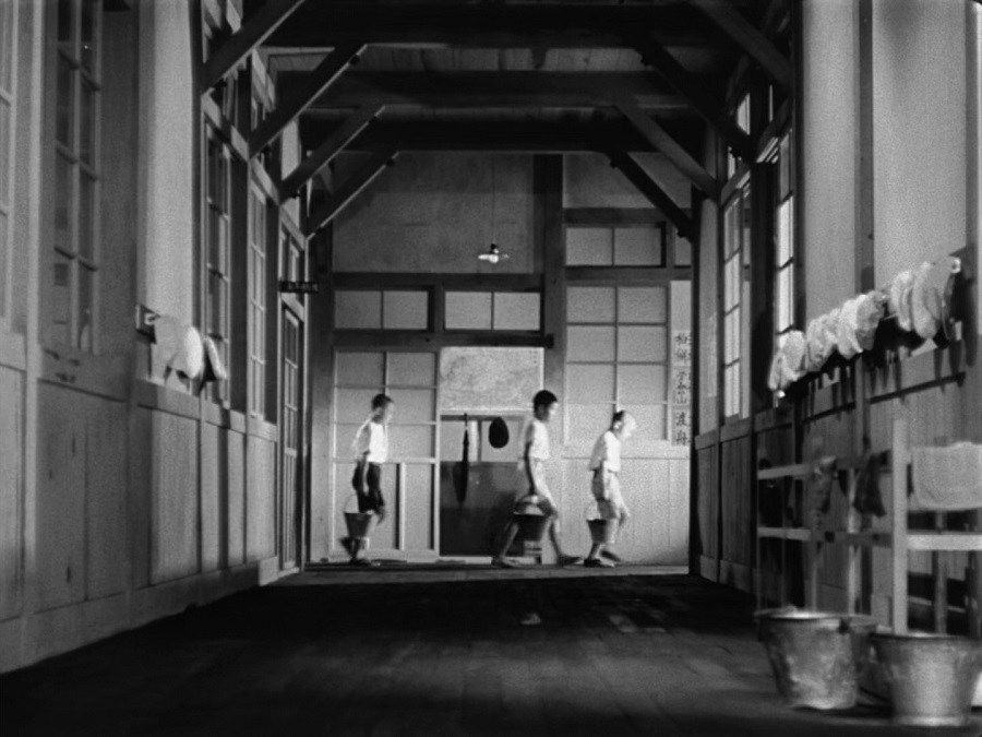 อีกหนึ่งลายเซ็นต์ ‘สไตล์ Ozu’ ถ่ายในโถงทางเดินแล้วมีตัวละครเดินผ่าน สะท้อนถึงชีวิตที่ดำเนินไป ซึ่งขณะนี้เด็กๆกำลังขับร้องเพลง People of the old days, Where are they now?