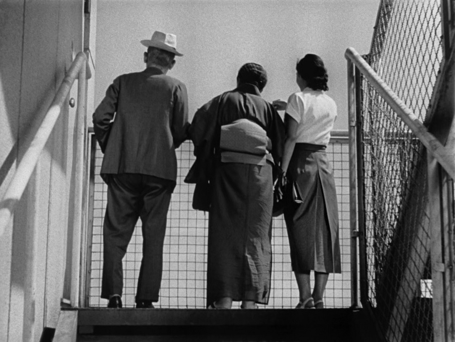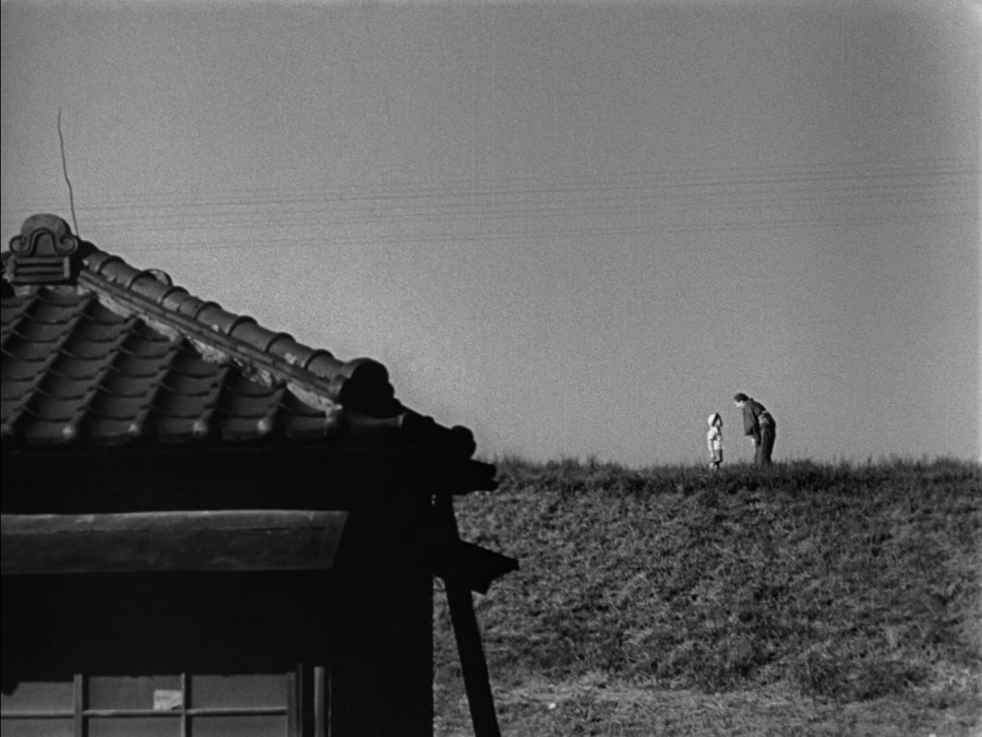 คุณป้า Toyo Takahashi (อีกหนึ่งนักแสดงขาประจำของ Ozu) เพื่อนบ้านของครอบครัว Hirayama โผล่มาทักทายตอนต้นเรื่อง และอีกครั้งช่วงท้ายเพื่อเติมเต็มวัฏจักรครบรอบ แต่คราวนี้ด้านหลังของพ่อไม่มีแม่ให้พักพิง