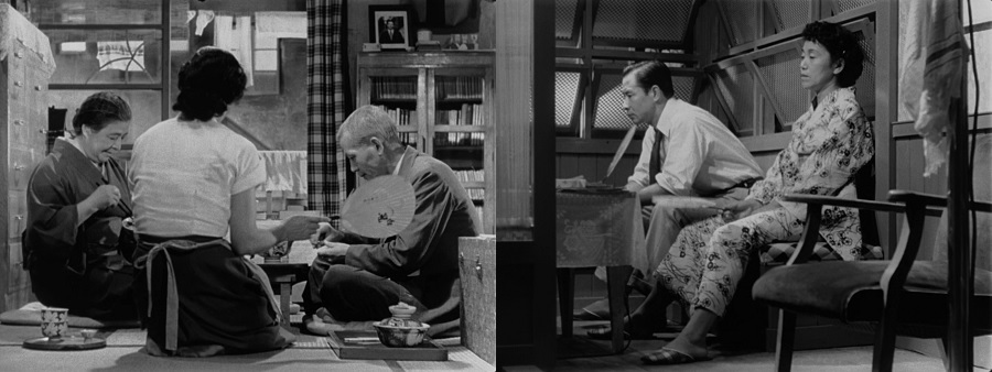 อันนี้ก็เลือกปฏิบัติเหมือนกันนะ! ภาพซ้าย Noriko พัดลมให้พ่อ-แม่สะใภ้ ระหว่างรับประทานอาหารเย็น (อาหารของเธอยังวางอยู่ ไม่เร่งรีบรับประทาน) ช็อตถัดมา Kōichi กับ Shige นั่งเฝ้ารอคอยพ่อ-แม่กลับบ้าน ร้อนนักพัดให้ตนเอง ไม่เอื้อเฟื้อเผื่อแผ่ความเย็นให้ใครอื่น