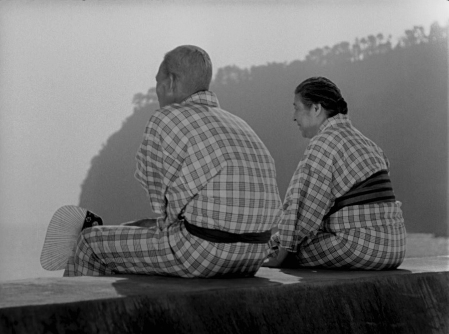 ถึงทิวทัศน์ท้องทะเลจะสวยงามแค่ไหน ‘สไตล์ Ozu’ ก็จะไม่ถ่ายให้ผู้ชมเห็น (นอกจากขณะร้อยเรียงภาพ อารัมบทเข้าตอนเท่านั้น) ซึ่งช็อต 45 องศา ปู่-ย่านั่งจับจ้องมองท้องทะเล พวกเขากำลังเหม่อมองถึงอนาคตลูกๆ ก็ไม่รู้เหมือนกันว่าจะเป็นอย่างไร แต่วันนี้ตระหนักได้ว่าใครๆเหมือนจะไม่ต้องการ ใกล้ถึงเวลาจะต้องกลับบ้านแล้วสิ