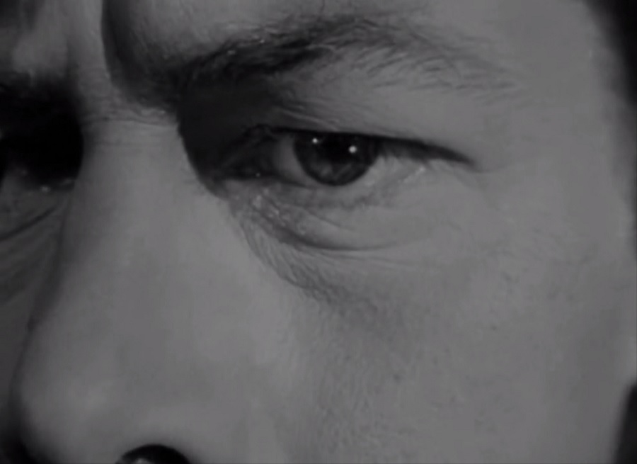 ระหว่างที่กล้องกำลังเคลื่อนเข้าไป ดวงตาของตัวละครจะยังมืดดำสนิท จนกระทั่งเมื่อจุดๆหนึ่งที่ Rear Projection ที่ฉายผู้ชมด้านหลังมืดลง จะมีแสงไฟสองดวงเล็กๆปรากฎขึ้นในแววตาของเขา (ตาข้างที่มองไม่เห็นของ Harrison)