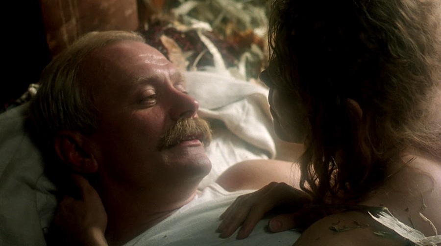 มองผิวเผิน Maroussia ก็ดูเหมือนผู้หญิงปกติทั่วๆไป แต่การหวนกลับมาของ Mitya ใครช่างสังเกตจะเริ่มพบเห็นอาการผิดปกติ น้ำเสียงสั่นๆ ท่าทางลุกลี้ร้อนรน เทน้ำล้น นั่งโยกตัว มือเคาะแก้ว หรือตอนนอนอาบแดดริมแม่น้ำ พูดขับไล่บุตรสาวให้ไปล่องเรือกับบิดา (เพื่อตนเองจะได้มีเวลาสองต่อสองกับ Mitya) ฯ ปฏิกิริยาภาษากายเหล่านี้ ซุกซ่อนความรู้สึก ลับลมคมใน โหยหาอาลัย โล้เล้ลังเลใจ ถือว่ายังมีใจให้อดีตคนรัก พอเขาเล่านิทานจบ เธอก็มิอาจควบคุมตนเองอีกต่อไป
