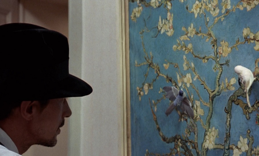 แต่หลังจาก Vincent เดินทางมาเยี่ยมเยียน Theo และ Jo เมื่อเกิดการโต้เถียงเกี่ยวกับการขายผลงานให้นักวิจารณ์ เขาจึงนำนกสองตัวปักลงในภาพวาด (อันนี้หนังสร้างเรื่องขึ้นเองนะครับ ไม่มีหลักฐานว่าภาพนี้มีร่องรอยความเสียหายประการใด) ถ้ามองผิวเผินการกระทำดังกล่าวเหมือนทำให้ภาพวาดดูมีชีวิต กลายเป็นสามมิติ แต่ผมมองว่าคือสัญลักษณ์ของการทำลายภาพวาด/ความสัมพันธ์ แถมมีนกสองตัวสีขาว-ดำ จะมองว่าคือพี่น้อง Vincent-Theo หรือคู่ Theo-Jo ก็ได้ทั้งนั้น